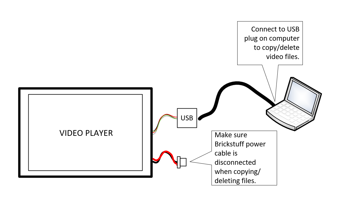 To operate the video player, connect it to a power source as shown in the figure below. Once connected, the video player will begin playing the last selected video (and looping that video).